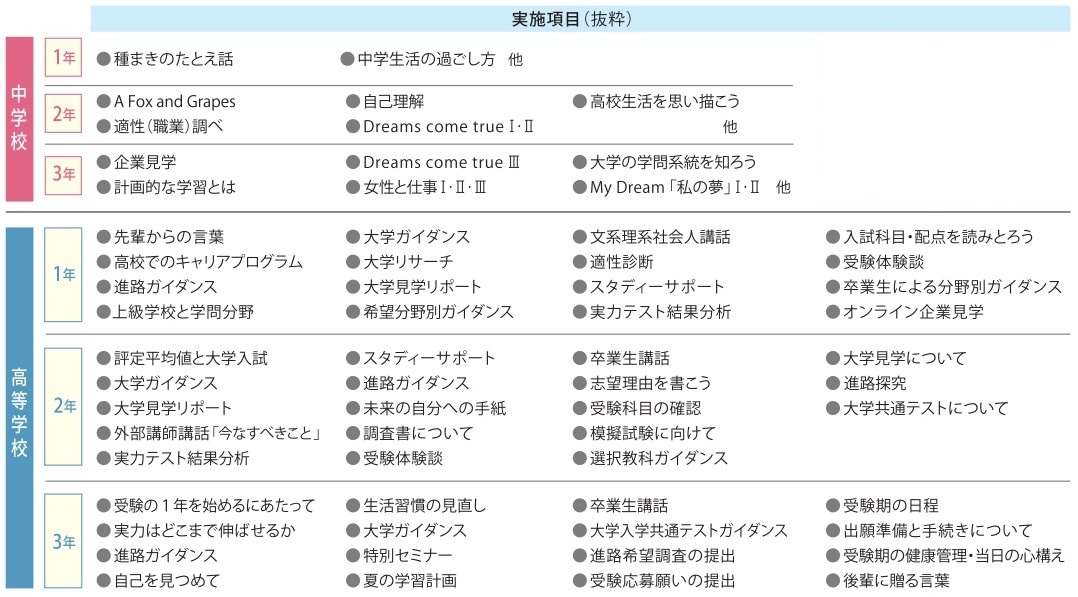 キャリアプログラムは中学1年生から高校3年生まで、継続実施されます。