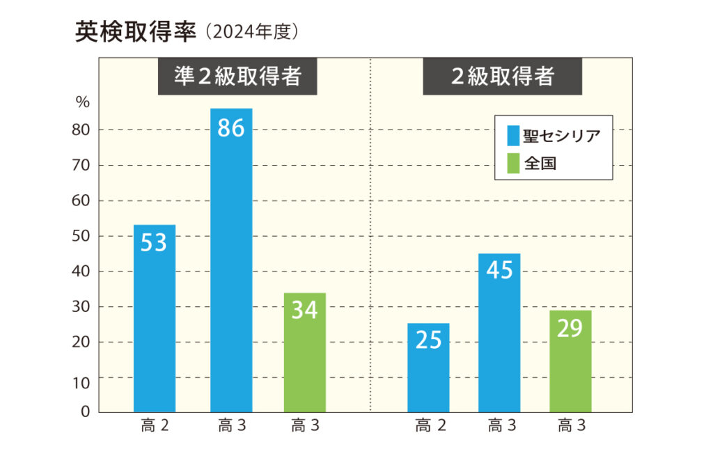| 英語検定 | 4級100%取得 3級50%取得 | 3級100%取得 準2級50%取得 | 準2級100%取得 2級50%取得 |