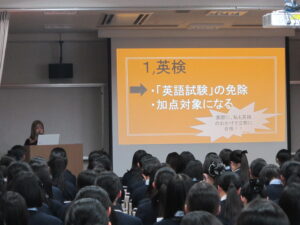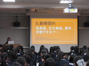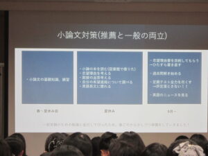 生徒たちは年齢の近い、中には関わりのあった先輩の話を聞くことで、自分たちもあとに続くべく受験への熱が高まったことと思います。