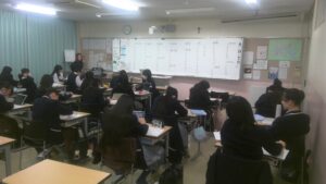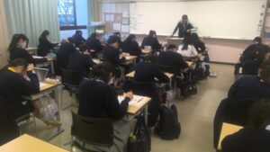 12月12日の中学3年生のLHRの時間は、キャリアプログラムの1つ、「大学の学問系統を知ろう!」を実施しました。中学3年生は中学卒業が近くなり、将来のあり方や進路について将来の方向性を考える時期になりました。本日は大学において学ぶ学問の学問系統を知るべく、レジュメを用いて各クラス担任より説明がありました。