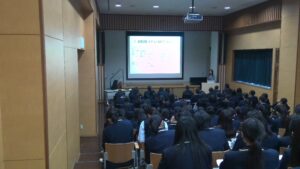 特にこれからまず第一に行う選択は高1の文理選択であり、定期試験の科目も増える中で、得意だと思った科目が苦手だったり、苦手だと思っていた科目が得意だったり、思いがけないことに気付き、悩むこともあります。高校生になった焦りも出てきますが、定期試験を大切にすると、自分の得意・苦手科目が分かり、見えてくるものがあるという話には、頷く姿も見られました。