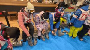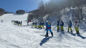 インストラクターの指示を受けながら一つひとつ修正を重ね、昨日できなかった動きに果敢に挑戦する姿が多く見られました。転んでもすぐに立ち上がり、何度も滑り直す様子からは、確かな成長と前向きな姿勢が感じられました。