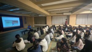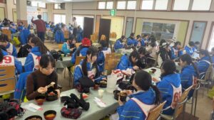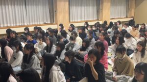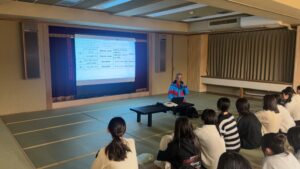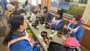 夜のミーティングでは、スキー学校のインストラクターより、検定当日に向けた滑り方のポイントや注意点について説明を受けました。生徒たちも明日の本番を意識しながら、真剣な表情で話を聞いており、会場にはほどよい緊張感が漂っていました。
