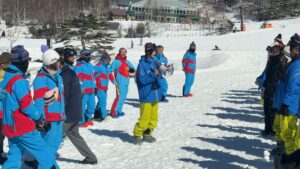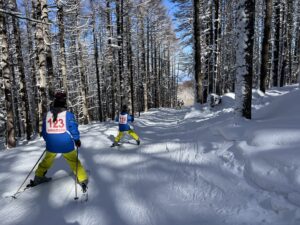この日は3日間の中で最も天候に恵まれ、晴天のもと、視界も良好な絶好のコンディションとなりました。スキー教室は順調に進行し、生徒たちはこれまでの講習で身につけた技術を一つひとつ確認しながら、落ち着いて検定に取り組んでいました。滑りにも余裕が感じられ、スキーに慣れ、楽しんでいる様子もうかがえました。