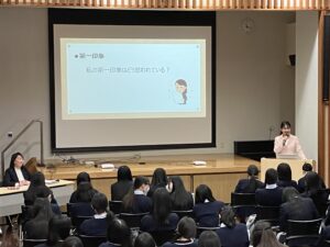 生徒それぞれ、第一印象で着目するポイントはどこか、自分はどのように見られたいか、ペアワークを実施して発表していました。これは自己洞察をする良い機会となったのではないでしょうか。