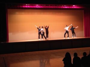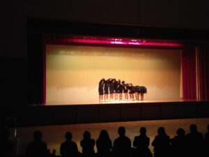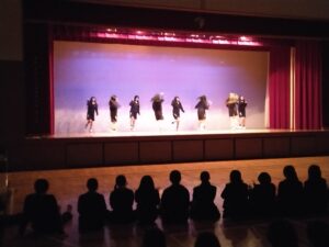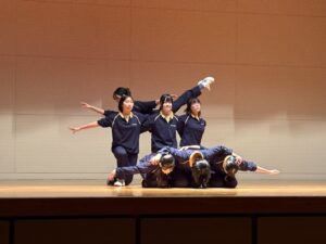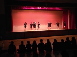1月29日(木)、30日(金)の授業中、にぎやかな声が聞こえてきたのでアリーナへ向かってみると、中学3年生の体育の授業の中で創作ダンス発表会が行われていました。体育の授業でメンバー同士協力して取り組んできた集大成となる発表会でした。