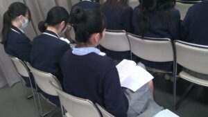 2月6日(金)の中学3年生のLHRは、来週に迫ったスキー教室の事前学習でした。本日配布されたスキー教室のしおりをもとにして、全体の流れの説明がありました。