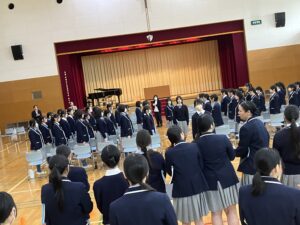 あすはいよいよ卒業感謝のミサと高校生全員が参加する予行練習です。