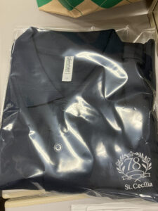 最後に卒業生の生徒たちから、お世話になった先生方へ卒業記念の品をプレゼントです。今年のプレゼントはポロシャツでした!夏の暑い時期に仕事でも着られるものです。第78期生からのプレゼントということで黒地に銀のおしゃれなエンブレムが刺繍で入れられたデザインです。ありがとうございます!