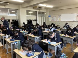 教室に戻った後は「後輩に送ることば」を後輩の生徒たちに向けて書きます。後輩を思う優しい生徒たちが集まる本校ならではの伝統儀式の一つです。