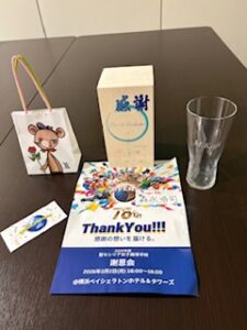 みなさんからは、感謝の品として “ 78th ポロシャツ ” と “ 名入れグラス ” をいただきました。