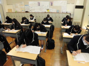 2026.03.04 ブログ ブログ第4回定期試験が始まりました本日から土曜日までの4日間、今年度最後の定期試験となる第4回定期試験を実施しています。 朝から登校するとすぐに教科書を広げたり、友だちと問題を出し合うような光景が見られました。 試験を開始すると、皆真剣な表情でテストに臨んでいます。