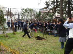 2026.03.24 ブログ ブログ平成30年卒業生(第71期生)の植えたプラムが今年も綺麗に咲いてます!平成30年卒業生(第71期生)が植樹したプラムの白い花が今年も綺麗に咲いています。第71期生のように、周りをぱっと明るくさせています。皆様も学校に訪れた際は、ご覧ください。(8年前の植樹の様子)(本日のプラムの様子)
