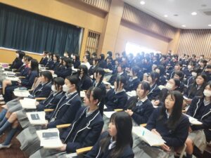 先日、始業式が行われ142名が高校2年生に進級しました。本日はセシリアの最高ブロックであるCブロックに入った高校2年生を対象に進級オリエンテーションが行われました。本校では、Cブロックを「自己挑戦期」と定めており、この時期に「アイデンティティーを獲得」することを目標としています。目標達成のためには、以下のことを実践することが大切であることを確認いたしました。