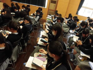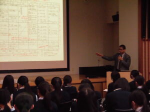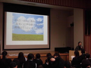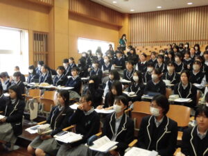 生徒は落ち着いた態度で説明に耳を傾けていました。