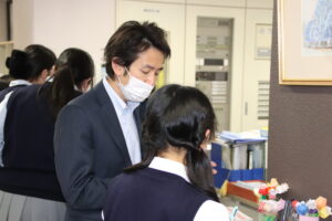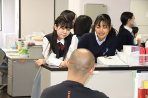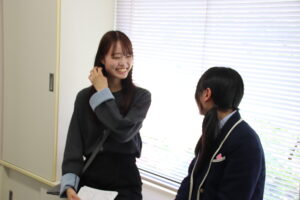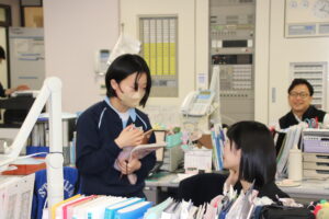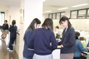 2026.04.18 ブログ ブログ職員室の風景セシリアの職員室のいつもの風景。昼休みになると生徒が集まり先生達とお話をします。もちろん、勉強を教わっている生徒も。この生徒の笑顔があふれる職員室はセシリアの先生達の喜びです。 4月は新クラスとなって担任の先生と個人面談が行われています。