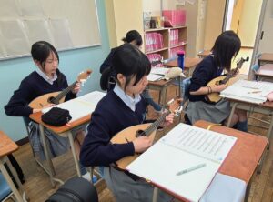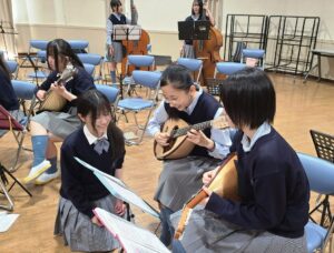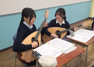 私たちは、マンドリンやギター、コントラバスなどの弦楽器を弾いています。