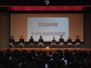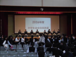 今回の選挙では、中学3年生から生徒会長を1名、中学2年生から副会長を1名選出します。投票に先立ち、選挙管理委員より選挙の流れや運営についての説明があり、これまでの準備にしっかりと取り組んできた様子が伝わってきました。