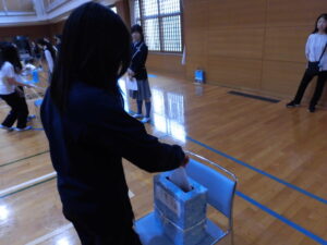 本日、6時間目終了後にアリーナにて中学生徒会役員を決める選挙が行われました。