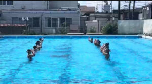 そして、夏休みの終わりにはシンクロの練習と撮影を行いました。10月18.19日のセシリア祭で、水泳部ではアイスの販売と、シンクロの動画上映をしますので、ぜひお越しください!