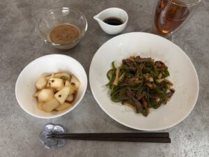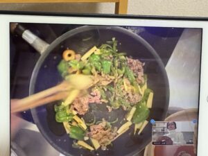 はじめての方にも分かりやすい説明を伺いながら「薬膳チンジャオロース」「薬膳簡単サラダ」「薬膳ナッッペースト(デザート)」をつくりました。