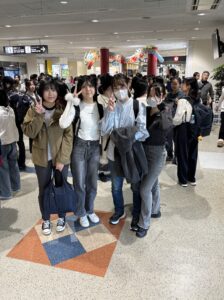 2025.11.08 ブログ 学年【高校2年生】修学旅行初日①11月8日、高校2年生は待ちに待った修学旅行初日を迎えました!生徒たちは朝早くに眠い目を擦って羽田空港に遅刻者なく集合し、長崎空港へ飛び立ちました。11時30分、無事に長崎に到着しました。これから平和公園に向かい、本日は平和学習を行っていきます。