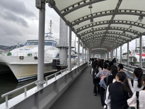 修学旅行2日目。本日は高速船に乗って五島列島へ向かい、五島の大自然に触れ、青砂ヶ浦天主堂ではミサに与りました。