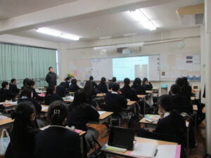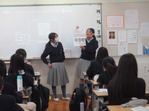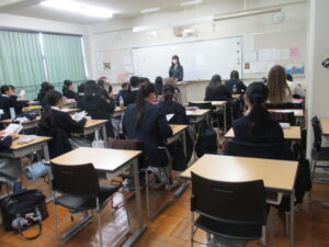 まず、担任からクリスマスの本当の意味、待降節とはなにか、そして、その期間は特に穏やかな優しい気持ちをもって丁寧に日常生活を送ることが大切であると伝えられました。次に、各クラスで福祉委員から奉仕の日に制作するクリスマスリースのつくり方や準備物などについて説明がありました。最後に、担任と福祉委員から11月17日の錬成会のテーマとその内容について簡単な紹介がありました。