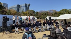 横浜みなとみらいの臨港パークで毎年実施されてきた「復興まつり」も今年で12回を迎えました。テーマは「ともに生きよう!2025」です。多くの大切な人・ものを失った震災から立ち上がり、一歩一歩乗り越えてきた東北の皆さんと繋がり、未来に向けてともに生きようという志がここにはありました。これはセシリアの生徒たちが、女川の「コミュニティスペースうみねこ」の代表である八木さんから常々教えていただいてきたことと同じです。