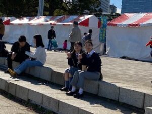 横浜みなとみらいの臨港パークで毎年実施されてきた「復興まつり」も今年で12回を迎えました。テーマは「ともに生きよう!2025」です。多くの大切な人・ものを失った震災から立ち上がり、一歩一歩乗り越えてきた東北の皆さんと繋がり、未来に向けてともに生きようという志がここにはありました。これはセシリアの生徒たちが、女川の「コミュニティスペースうみねこ」の代表である八木さんから常々教えていただいてきたことと同じです。