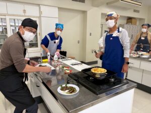 前期1回、後期1回実施されている「お父さんのためのお料理教室」が11/29土曜日に行われました。このお料理教室もおかげさまで第16回を迎え、お父さんたちに支えられて、楽しく実施することが出来ました。今回はクリスマスパーティ企画、「ローストビーフ」「チキンのグラタン」「カプレーゼ」「ティラミス」を作りました。欲張って4品を作ったことは今までになく、若干の不安はありましたが、そんな心配を他所に、グループで力を合わせて完璧に作り上げてくださいました。どの班も大成功!「美味しい〜!」の声が聞こえ、今回も皆様のご協力のおかげで終えることが出来ました。小学校のお父さんたちもご参加いただき、中学校、高等学校の皆様と親睦を深めることが出来ました。ご参加いただきましたお父さん、お忙しい中ありがとうございました。