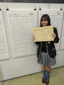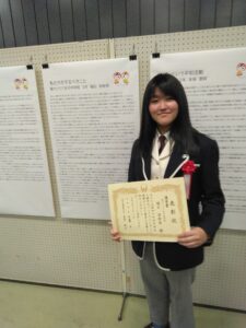 今回、入賞した生徒の作品も、惜しくも入賞しなかった生徒の作品も、中学3年生の作品のほとんどが「人権」について、決して誰かの話というよそ事な捉え方ではなく、自分ごととしてとらえることのできるとても良い作品でした。こうした作文を書くことが出来たのは、日々の生活の中で、相手のことを考え思いやる姿勢が少しずつ身に付いてきて人権意識を持てているからだと思います。